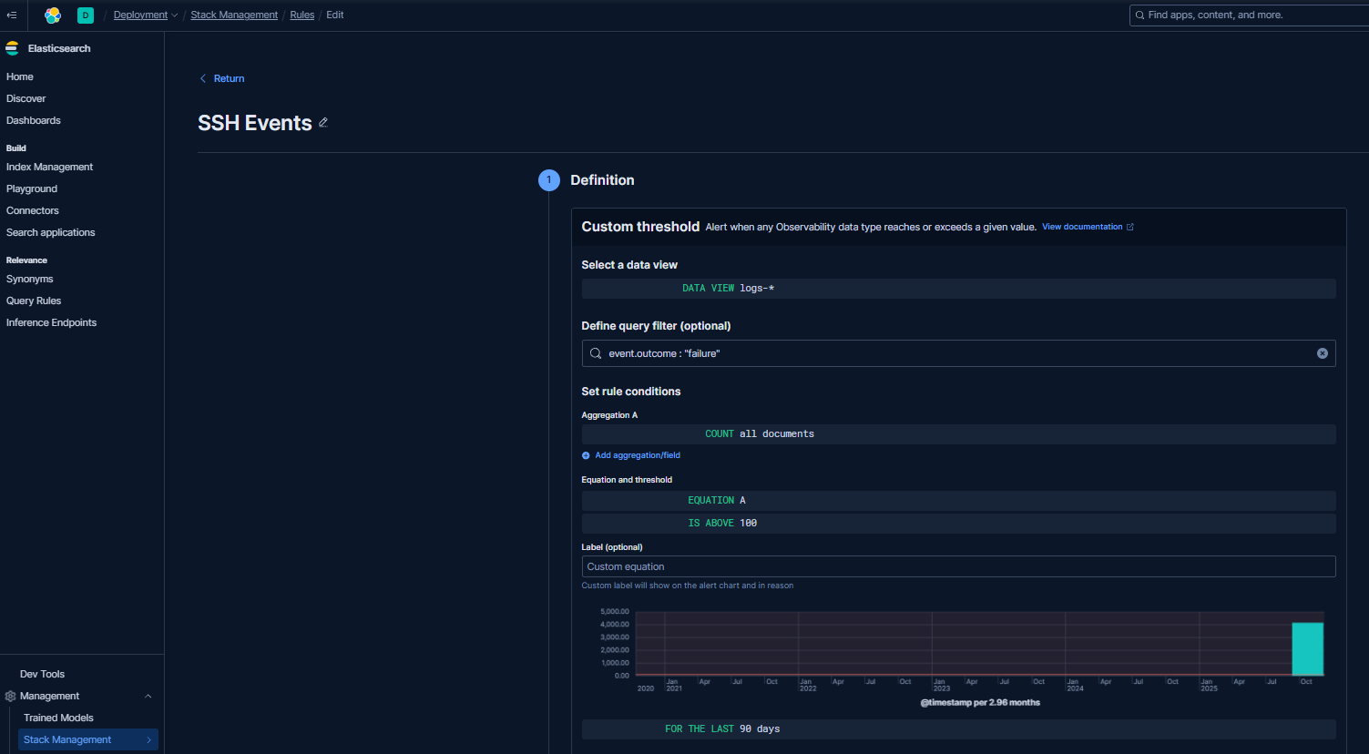 7. Enable a custom threshold alert.  Stack Management - Rules - Edit
