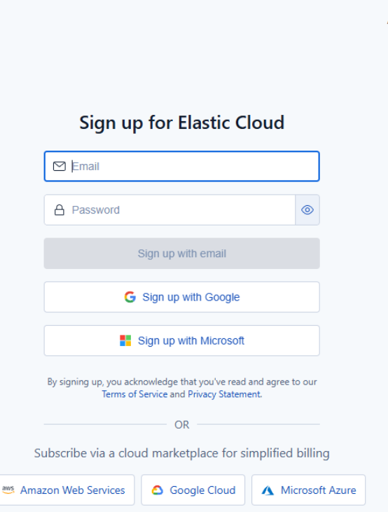 1. Create an Elastic Account.Visit https://www.elastic.co and sign up for a free account using your email.