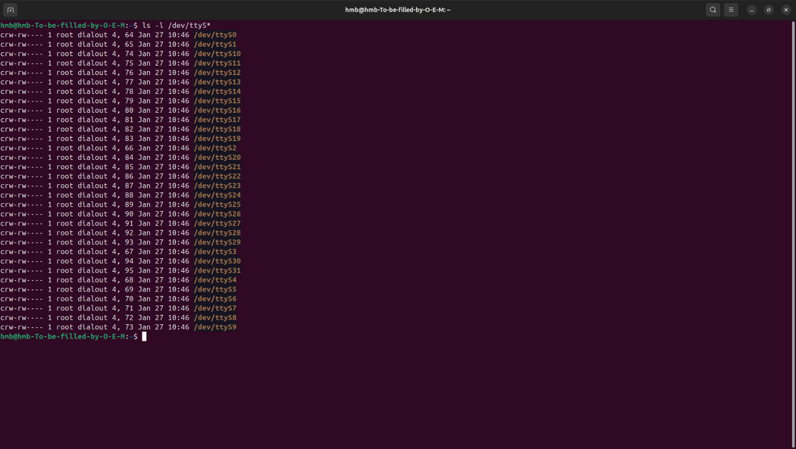 Since the mini PC has native serial ports, Linux exposes them as ttyS devices.