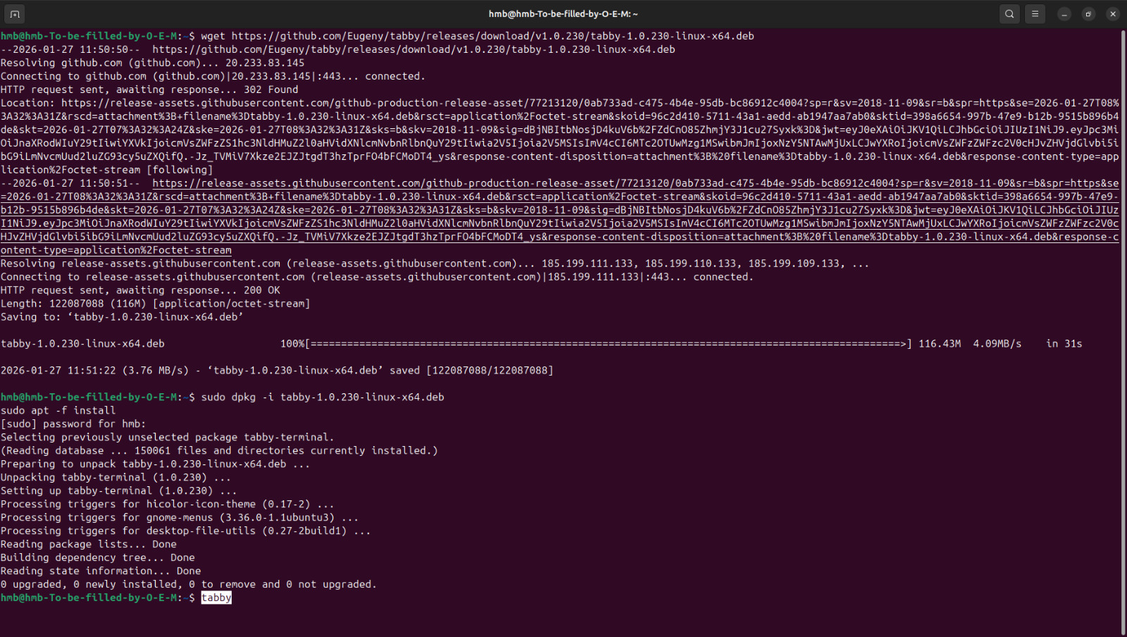 - Download the latest Tabby .deb package